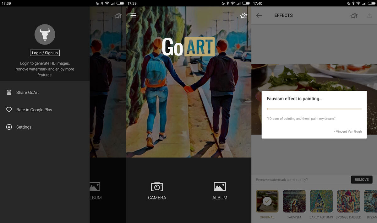 GoArt es una aplicación con la que podremos crear obras de arte a partir de nuestras fotografías haciendo uso de los impresionantes filtros que incorpora.