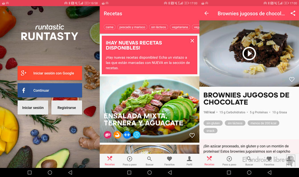 Si te pica la curiosidad y quieres tener en tu móvil este libro de recetas saludables hecho aplicación, ya puedes descargarlo desde la Google Play Store. Es gratuito y posee compras in-app. Para ver las recetas necesitas una cuenta de Runtastic.