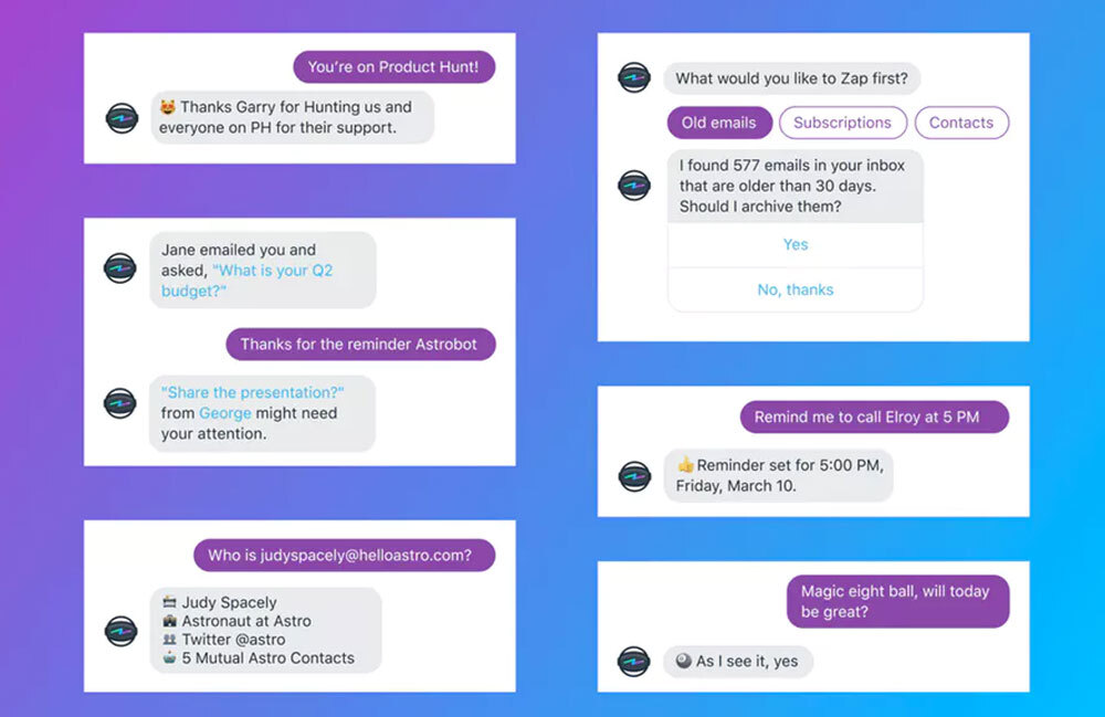 Astro es un cliente de correo electrónico gratuito que combina nuestros emails con inteligencia artificial y un bot en un chat.