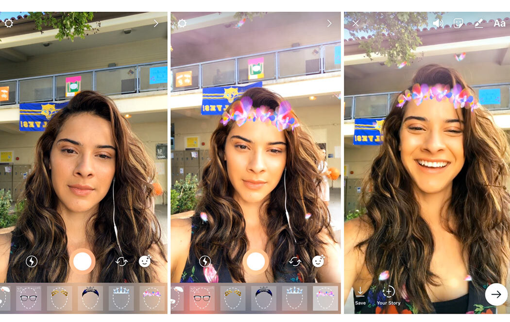 Los filtros faciales mediante realidad aumentada llegan a Instagram: añade orejas de conejo, coronas y otros efectos igual que harías en Snapchat.