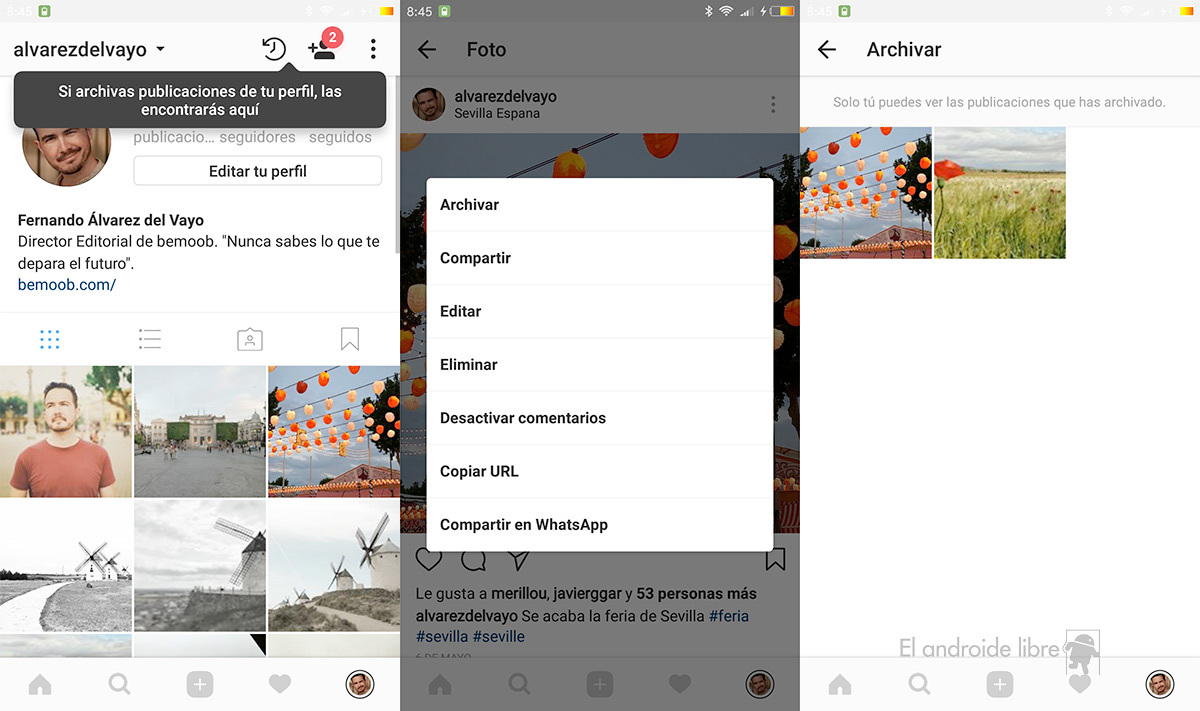 A partir de ahora podremos hacer uso de una nueva función llamada Archivo que nos deja moverlas desde su sitio a una especie de zona oculta que sólo será visible por nosotros. De esta manera elegiremos si sale o no en nuestro perfil.