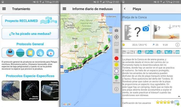 Otra aplicación que conviene consultar si os encontráis en las costas catalanas es PlatgesCat. En ella encontraréis multitud de información sobre todas las playas del litoral catalán con datos como la temperatura del agua y la bandera que ondea en la arena. También si existe presencia de medusas.