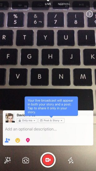 - La cámara de Facebook ahora tiene una sección «Live», donde podemos comenzar a retransmitir en directo sin pasar por el método tradicional. El vídeo en directo aparecerá en nuestra historia, aunque también podemos crear un post con el directo. Los efectos y demás de la cámara están activos durante el directo.