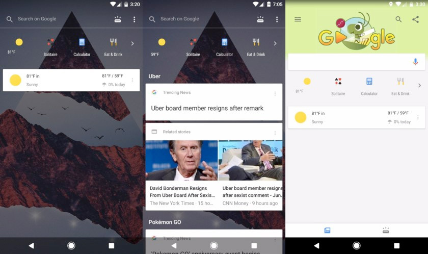 Si usamos este escritorio veremos cómo en la zona izquierda se mantiene la sección dedicada a Google pero ahora será más transparente, mostrando el fondo de escritorio entre las tarjetas.