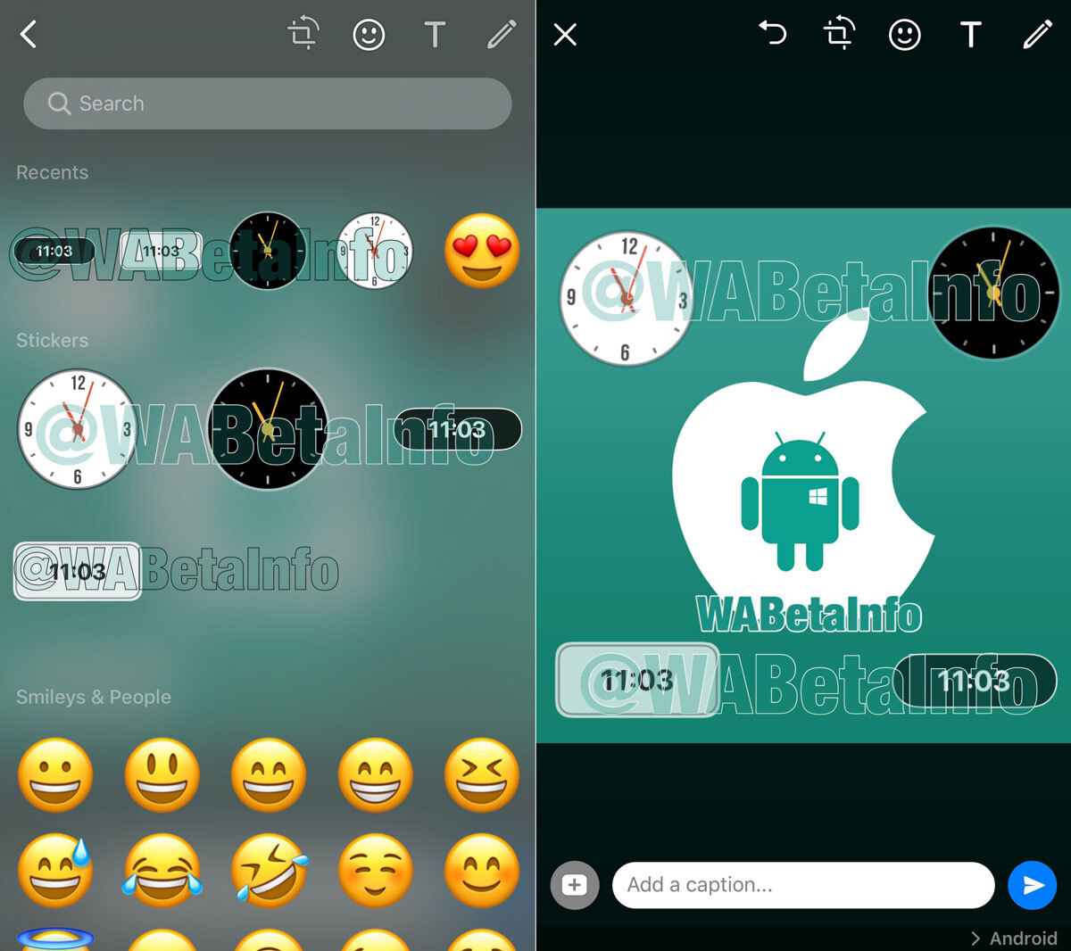 Los stickers se podrán aplicar no sólo en las historias de WhatsApp; también para enviar fotografías y otro contenido a otros usuarios y grupos. Ahora sólo hay stickers de relojes, pero es previsible que se incluyan todos los stickers que ya tiene Instagram.