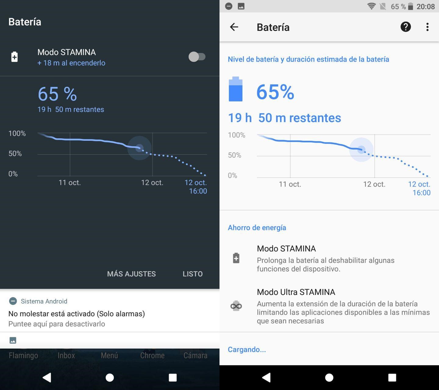 En la aplicación en sí tenemos lo que ya conocíamos desde hace tiempo. Podemos saber cuanta batería tenemos, cuanto tiempo ha pasado desde la última carga, el tiempo que hemos utilizado el móvil o activar el modo ahorro de energía. Un ajuste muy útil para tener el control de qué es lo que está gastando nuestra batería.