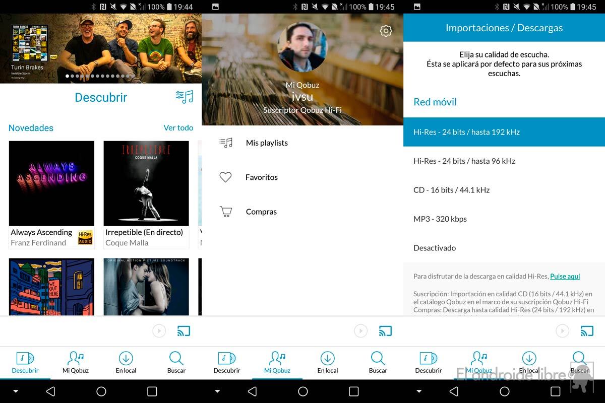 A nivel de funcionamiento sí es similar a la competencia. Qobuz dispone de aplicaciones móviles y también servicio web. Aquí es importante valorar el Android que tienes: poco importará que tengas un servicio con audio en máxima calidad si tu smartphone no puede reproducirlo a ese nivel.