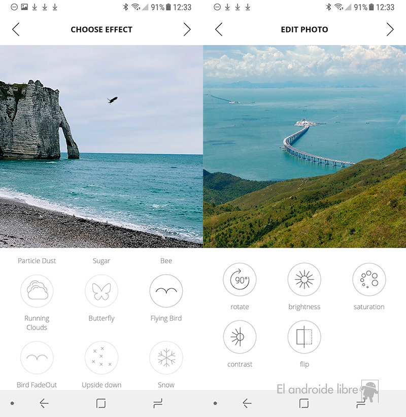 Esta es una app que nos permite añadir múltiples efectos visuales a cualquier imagen que hagamos con nuestro móvil o que importemos desde la galería del mismo. Para ello hemos de elegir la fotografía, editarla si es que queremos y luego escoger qué tipo de movimiento es el que nos gustaría que apareciera.
