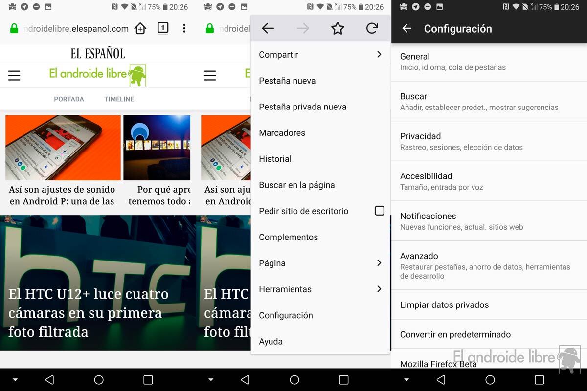 Hemos estado probando el motor Firefox Quantum en nuestros Android y el funcionamiento ha sido el esperado. Por lo general la carga de las páginas es rápida, aunque todo depende, como es obvio, de la cantidad de elementos a renderizar. No hemos apreciado ralentizaciones a pesar de que Firefox Beta es justo eso, una beta. Se nota que a Mozilla aún le queda por pulir, pero Quantum funciona razonablemente bien en smartphones Android.