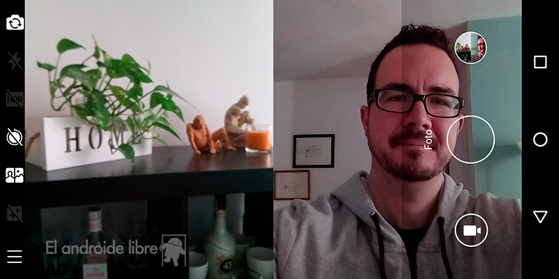 La parte más llamativa de esta aplicación es la que permite usar la cámara delantera y trasera a la vez, realizando fotos con ambos sensores. Es lo que Nokia llama Bothies. Para ello seleccionamos el ajuste que queramos en la barra superior y ya podemos realizar una foto con la mitad de la misma mostrando la parte delantera y la otra mitad con la parte trasera.