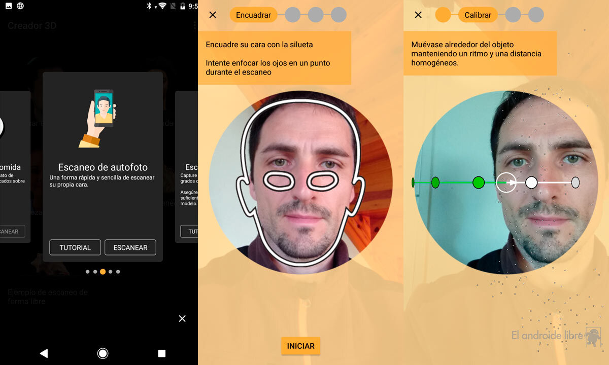 De los 4 modos anteriormente disponibles (cara, cabeza, comida y escaneado libre) pasamos a 5. El que se suma es el «Escaneado de autofoto«, un modo de captura que nos permite registrar la cara en 3D moviendo el móvil por delante del rsotro. Se hace uso de la cámara frontal mientras se mantiene idéntica mecánica: centrar la figura impresa en pantalla con nuestra cara y, a partir de ahí, ir girando el móvil para captar cualquier ángulo. Es un proceso que no dura más de 2 minutos.