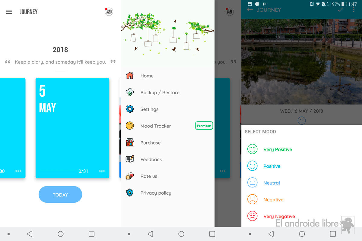 Journey aspira a ser un diario digital. Yo diría que lo consigue muy bien, me ha parecido muy buena aplicación. Acaba de lanzarse y es gratuita; con compras in-app que están en descuento por ser el primer día en la Google Play Store. Además, puedes probarla y pedirle un código Premium al desarrollador en este hilo de XDA Developers.