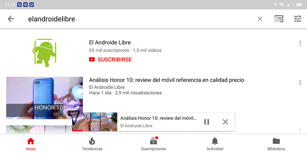 Ahora aparecerá una barra en la zona inferior en la que veremos el vídeo pero en menor tamaño, aunque obviamente se podrá seguir escuchando.