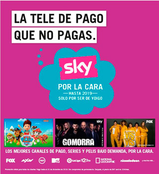 Todos ellos podrán entrar en su apartado de cliente en la página web de Yoigo y obtener un código de descuento con el que darse de alta en SKY TV en este enlace. El coste del servicio, que es de 10 euros al mes, será gratuito hasta el 31 de diciembre de 2018.
