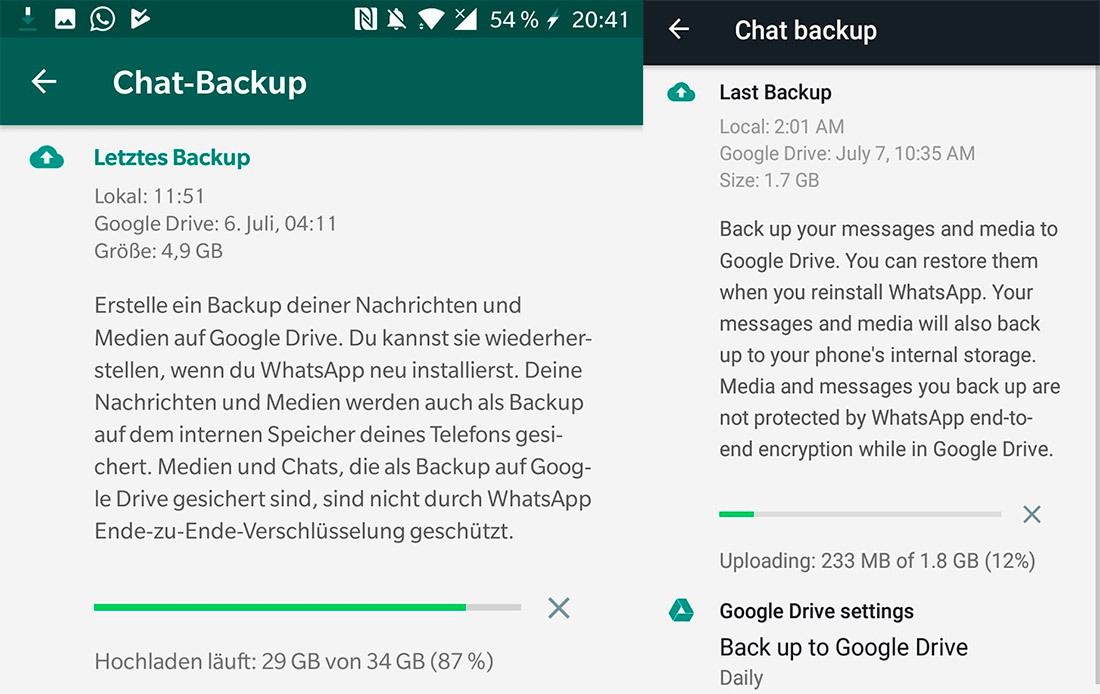 El último fallo de WhatsApp descubierto esta haciendo gastar GB de datos en 3G y 4G a sus usuarios al subir las copias de seguridad sin Wifi.