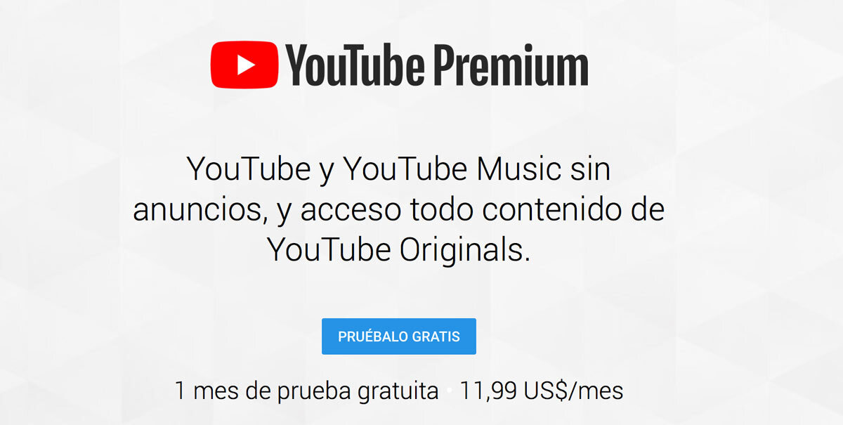 En un principio dispondrás de un mes gratis, después el precio es de 9,99 dólares; que, al cambio, son 8,75 euros, 1,29 euros menos que si te suscribes en España. Y si te suscribes a YouTube Premium te sale aún más barato: 10,50 euros al cambio frente a los 11,99 euros que vale la suscripción española (1,49 euros de ahorro cada mes).