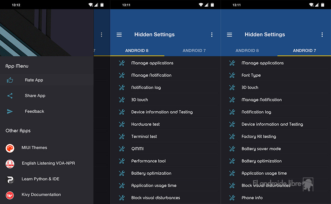 Teniendo eso en cuenta, nos encontraremos ante dos columnas de opciones que podremos usar. La derecha es para Android 7 y la izquierda para Android 8. Es de esperar que cuando Android 9 llegue a los móviles de Xiaomi se actualice con las opciones disponibles en esta versión.