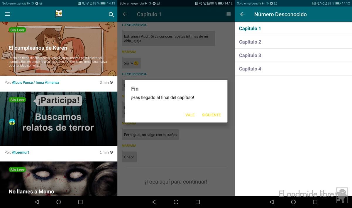 Los relatos que te encontrarás en la aplicación se diversifican en distintas categorías para que así dispongas de los géneros que más te gustan. Terror, romántico, comedia, ciencia ficción… Todos los géneros disponen de diversos relatos que van sumando historias con relativa frecuencia. Estas se subdividen en capítulos para que te sea aún más cómodo echar unos minutillos de lectura: tú decides cuánto leer. Eso sí, resulta muy habitual engancharse.