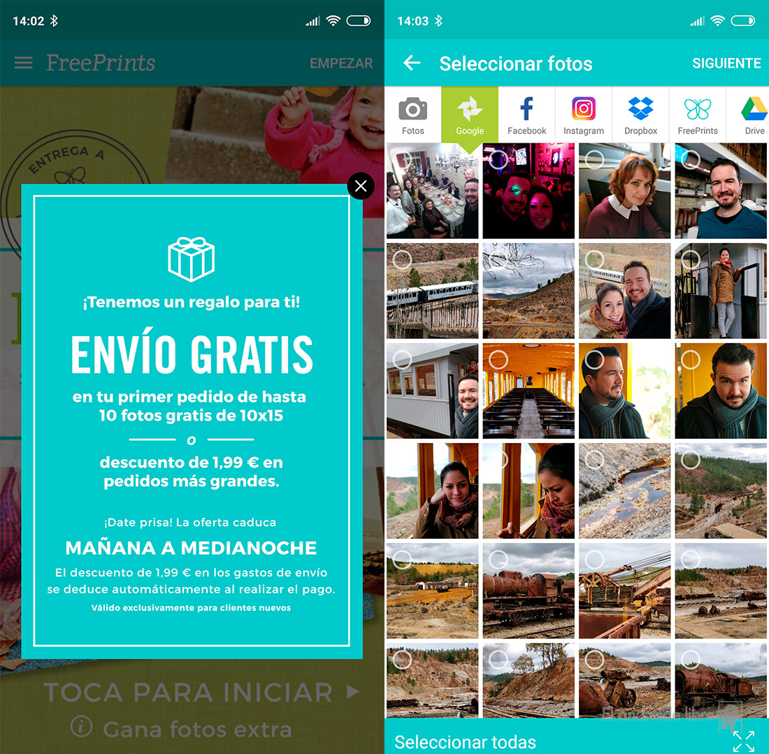 Pero hoy os queremos hablar de otro servicio, FreePrints, que podemos usar desde nuestro móvil y que nos ofrece impresión de fotografías gratis. Obviamente la pega, por decir algo, es que tenemos que pagar los gastos de envío. Menos hoy.