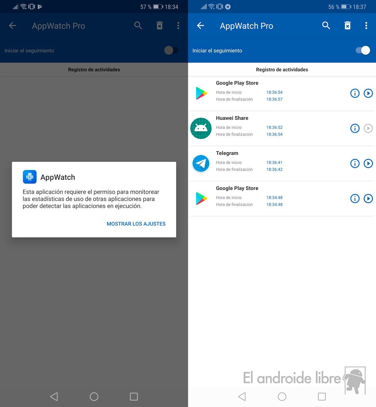• Instala AppWatch, dale permiso para acceder al registro de actividades, activa la monitorización y utiliza el móvil de manera habitual.