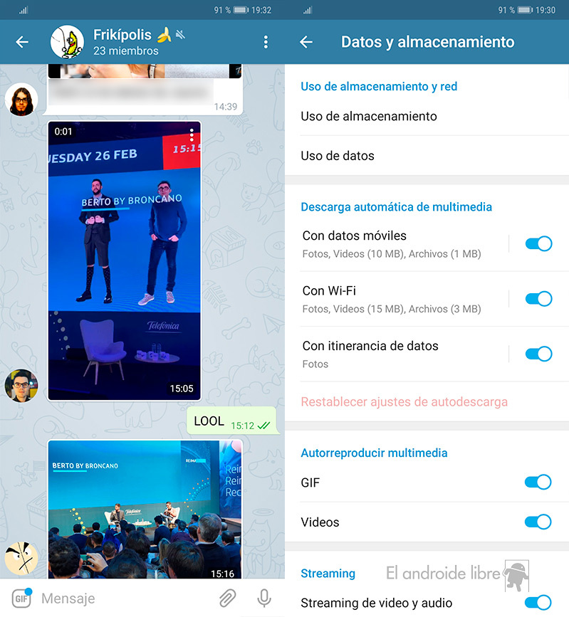 Telegram se ha actualizado con nuevas opciones para tener descargas automáticas y reproducción de vídeos también de manera automática.