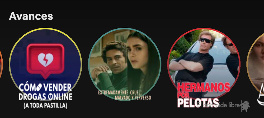 Aparece debajo del título destacado en la portada de la aplicación, y permite pulsar en cualquiera de los avances que hay disponibles.