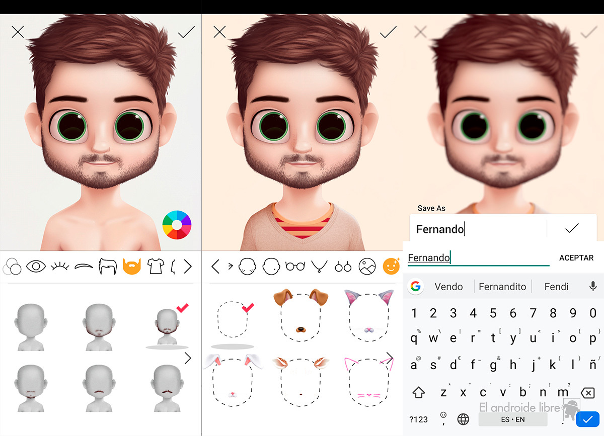 El proceso de creación es sencillo. Simplemente tenemos que elegir si queremos diseñar un chico o una chica e ir escogiendo cada uno de sus rasgos faciales, como boca, color de ojos, pecas, o cejas.