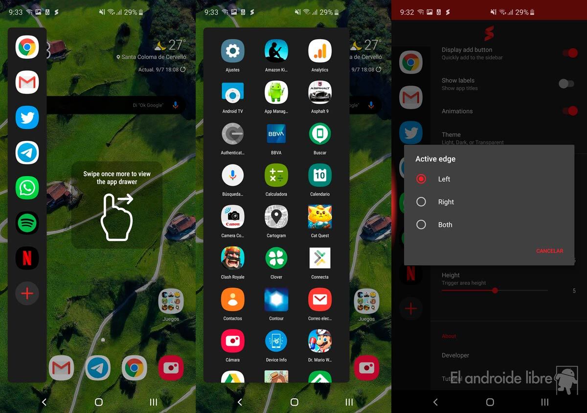 No es que la mecánica de ocultar un lanzador de aplicaciones en el lateral sea nueva ya que hay multitud de apps que ejercen esta misma función; por no hablar de las capas personalizadas de fabricante, que también suelen incluir botones flotantes. Pero no todas se ocultan de la misma manera ni ofrecen tanta ligereza en la instalación o en el funcionamiento: Sidebar 2 funciona realmente bien. Y posee animaciones realmente fluidas.