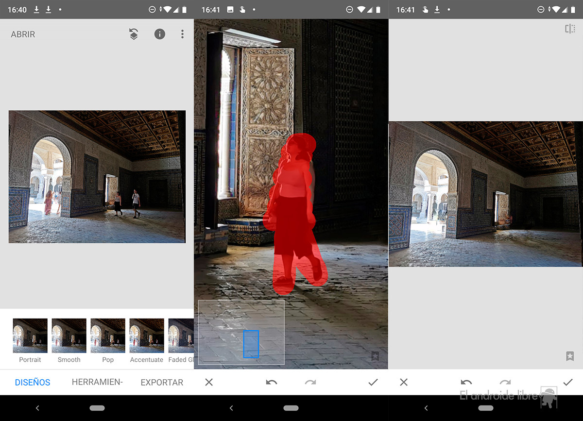 Cuando terminemos de seleccionar el objeto y levantemos el dedo veremos cómo la aplicación borra de forma casi mágica el objeto sobrante.