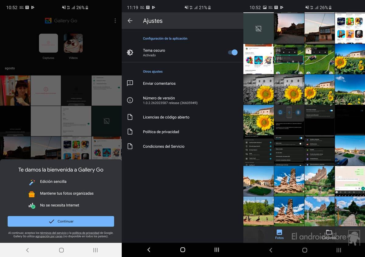 Gallery Go, la nueva galería de fotos de Google, ha recibido el esperado modo oscuro. Minimalista, compacta, sin conexión y con una interfaz muy agradable.