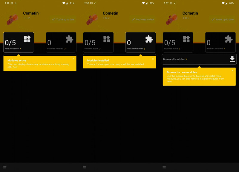 Así pues, Cometin tiene diversos módulos que podemos descargar e instalar en nuestro móvil.