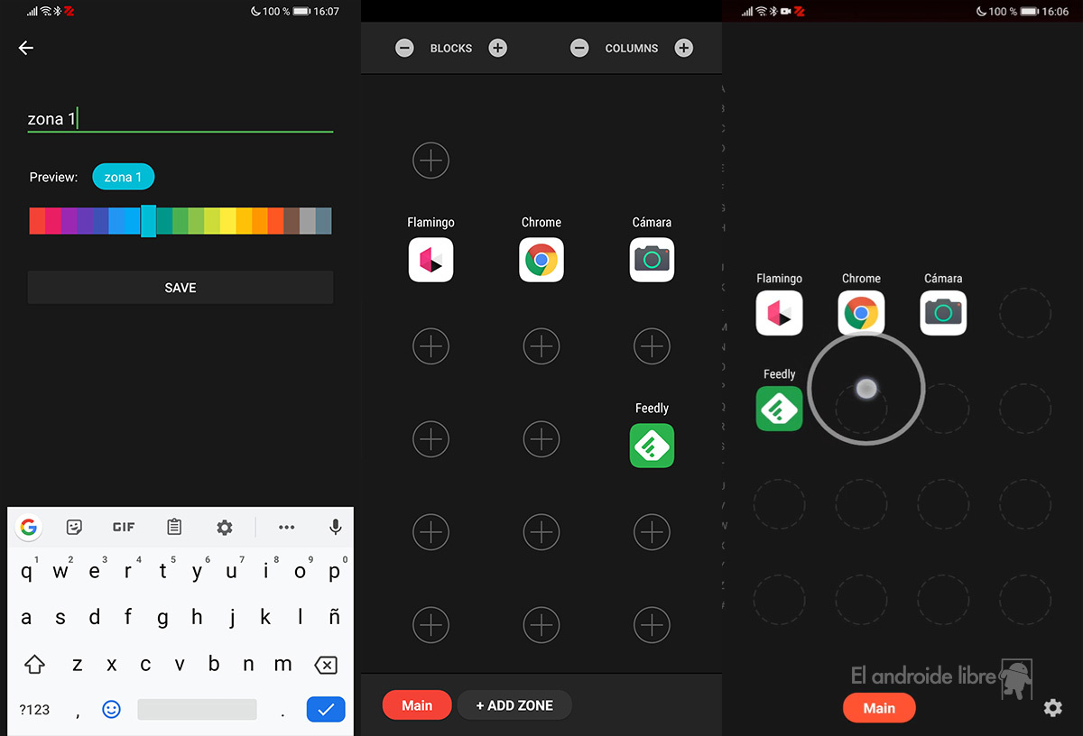 En los ajustes de la aplicación podemos cambiar el tamaño de la rejilla, así como crear diferentes categorías para organizar las apps elegidas. Eso sí, la versión gratuita solo permite dos zonas y si queremos crear más deberemos hacer uso de las compras en la aplicación.