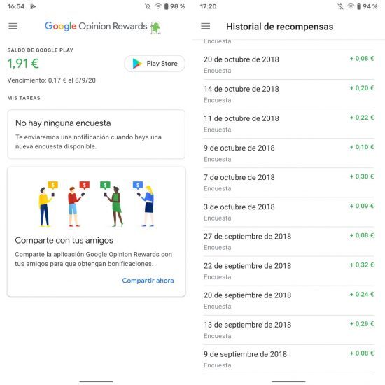 La aplicación de Google Opinion Rewards se ha actualizado para añadir la característica que todo el mundo pedía, poder saber cuando expira el crédito.
