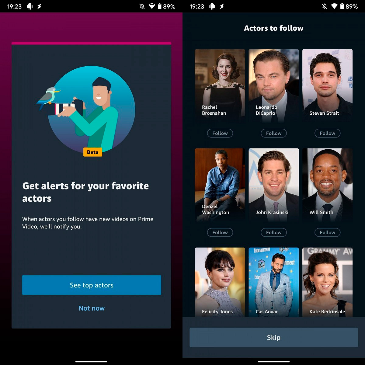 Amazon Prime Video te deja seguir a tus actores favoritos su app Android