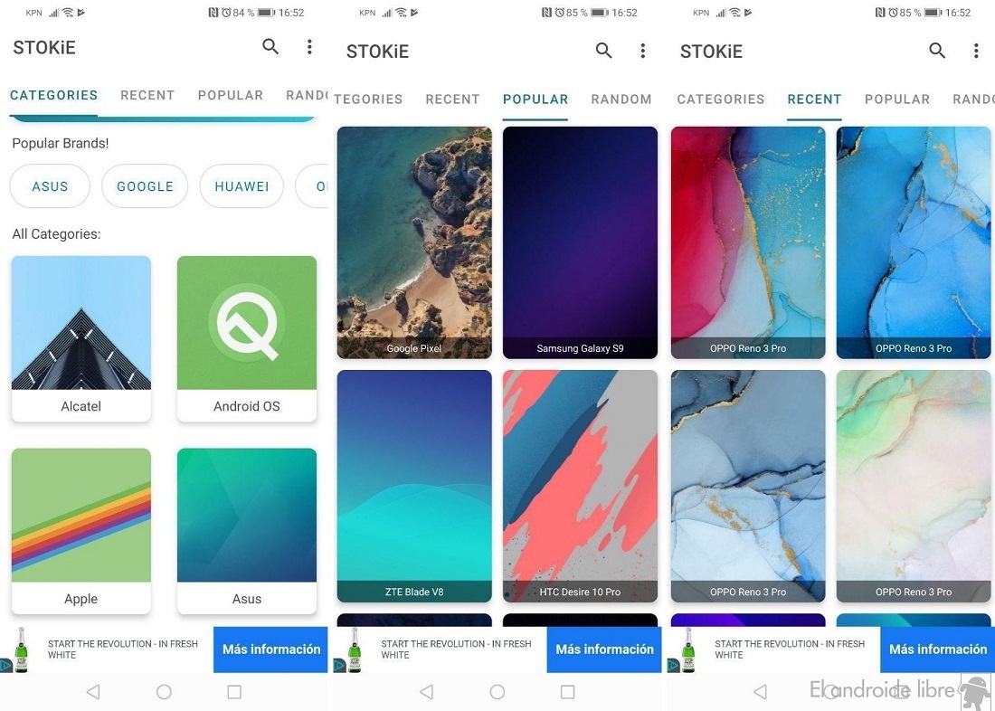 Si quieres tener en tu teléfono Android fondos de pantalla de otras marcas, puedes descargar STOKiE que te da acceso a 3.000 fondos en HD de forma gratuita.