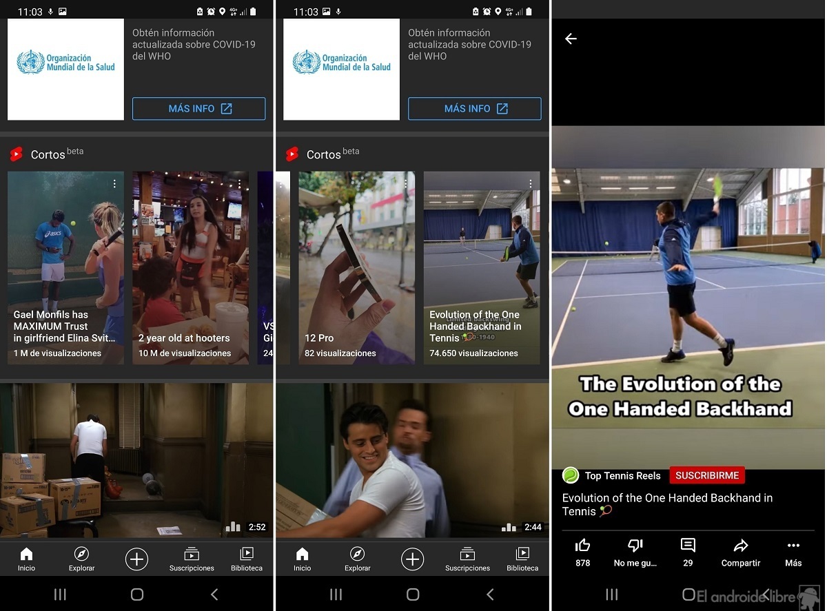 Cortos es el TikTok propio de YouTube, que cada vez más usuarios de la aplicación en Android pueden disfrutar. El concepto es de hecho idéntico al de TikTok, con vídeos verticales cortos (de hasta 60 segundos), con una navegación vertical para esos vídeos relacionados. La aplicación crea una nueva sección en la página de inicio para que tengamos acceso a estos cortos desde la misma.