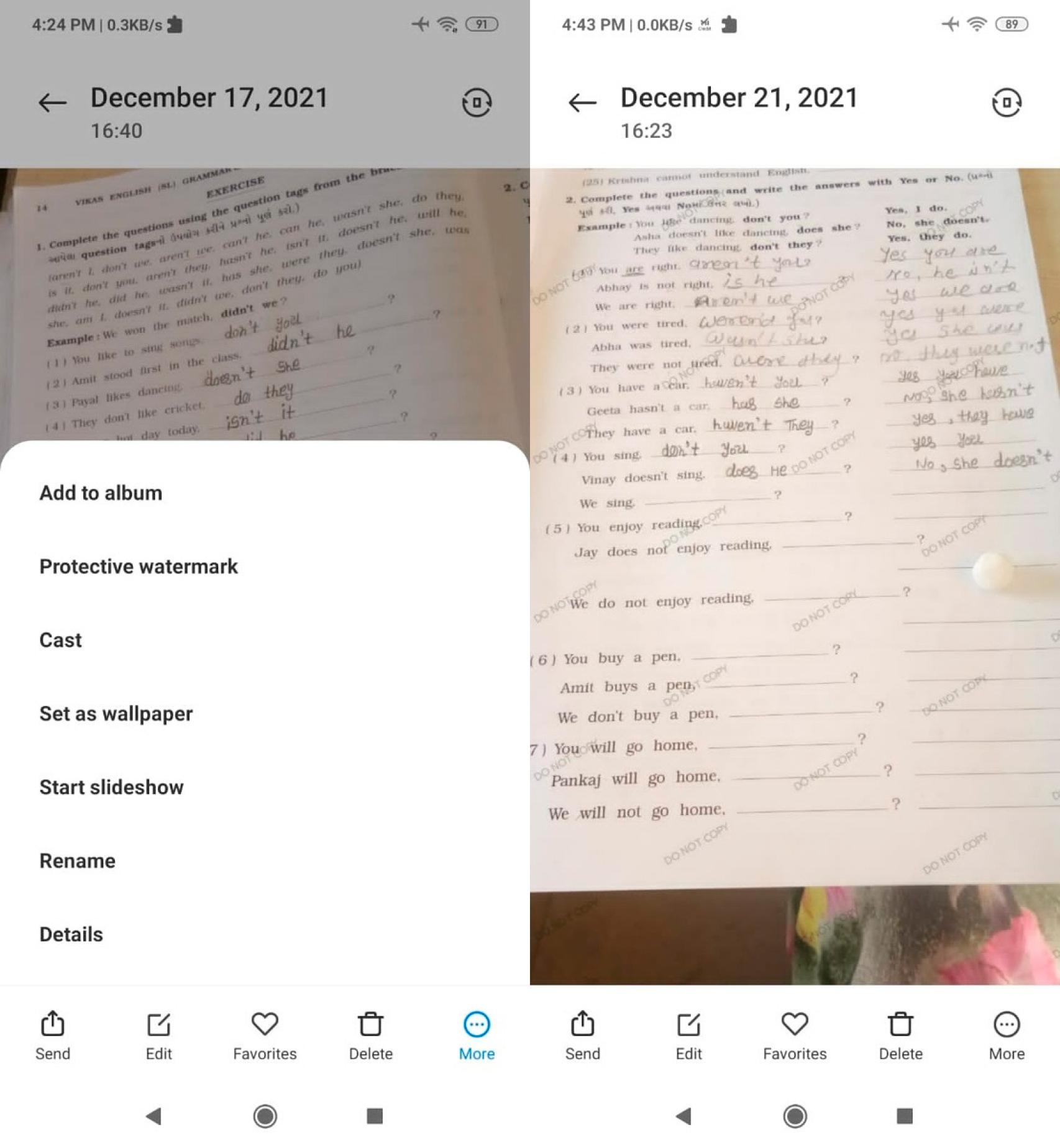 Para ello solo tenemos que abrir la aplicación de galería, navegar hasta la imagen en concreto y abrirla. Cuando abramos las opciones debería aparecer en la aplicación actualizada una opción llamada Protective Watermark (Marca de agua protectora).