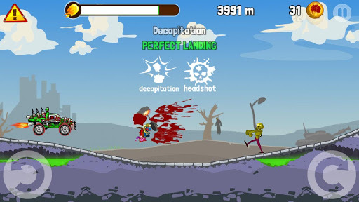 Entonces, ¿cómo ir mas rápido? Pues tenemos que aprovechar la accidentada geografía del mundo post-apocalíptico en el que nos encontramos, y realizar saltos espectaculares a cada ocasión que tengamos. Tendremos dos controles, cada uno para dar vueltas al coche hacia el lado correspondiente, con los que hay que jugar con la posición del coche antes de la caída. Si conseguimos una caída perfecta sobre las cuatro ruedas nuestra velocidad aumentará. En los momentos mas difíciles tendremos que estar pendiente de nuestra caída al mismo tiempo que disparamos nuestra arma (pulsando en cualquier sitio de la pantalla), por lo que poco a poco la cosa se vuelve cada vez mas peliaguda.