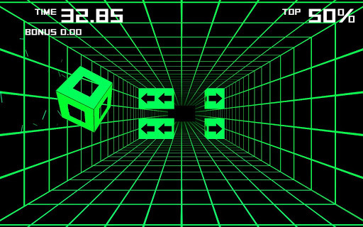 Una vez en faena, comprobamos que la jugabilidad también ha sido contagiada por esa simpleza. Controlamos a un cubo, que avanza a cada vez mayor velocidad a través del pasillo. Por el camino irán apareciendo obstáculos que al principio permanecerán inmóviles, pero que conforme avancemos darán paso a otros que nos engañarán con sus movimientos y sus formas.