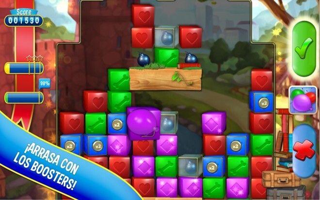 Las pantallas también evolucionan, con obstáculos dispuestos de tal manera que tendremos que pensarnos dos veces antes de pulsar, aunque la tentación es muy alta. También contaremos con herramientas como un «chupinazo» con el que podremos eliminar columnas enteras, o un pico que nos permitirá quitar bloques que nos molesten en nuestro plan. Un elemento que añade mas variedad es la necesidad en algunos niveles de liberar a las mascotas que están en lo mas alto. Para ello tenemos que eliminar bloques asegurándonos de que al final los animalitos lleguen a la parte mas baja del nivel.