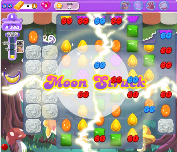 Pero las novedades no se paran con esto, porque también tenemos otros añadidos como nuevos efectos en pantalla o recompensas como Moon Struck que hace desaparecer algunos caramelos de color del tablero (podéis verlo en acción en la captura)