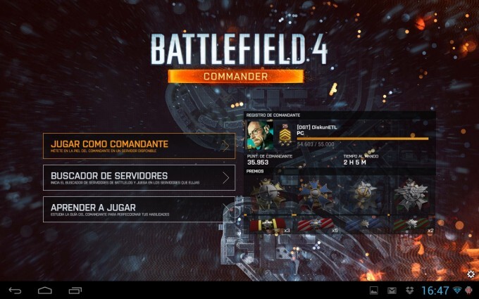 Battlefield 4: Commander es gratis y está disponible en Google Play (y en la App Store, por si tenéis un iPad), con los únicos requisitos de tener una copia de Battlefield 4 para cualquier plataforma y haber alcanzado el nivel 10 en el modo multijugador. Sin embargo, hay muchos dispositivos que no son compatibles con la versión que hay en Google Play, ya sea porque no están clasificados como Tablet o porque el sistema los marca como incompatible, a pesar de ser una Tablet.