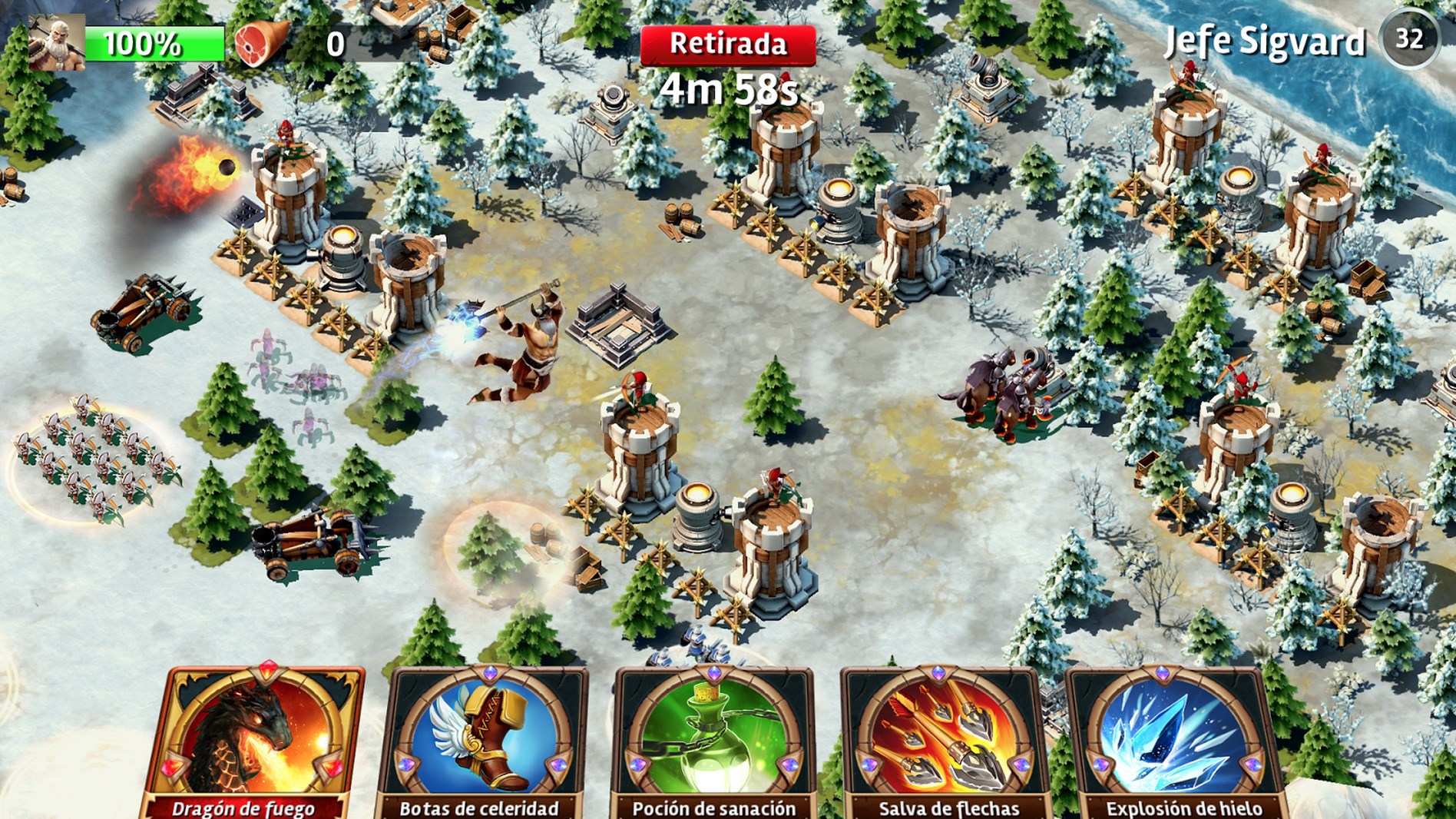 Asedio tiene unos gráficos en tres dimensiones resultones y muy coloridos. También disponemos de héroes personalizados con sus propios habilidades características.