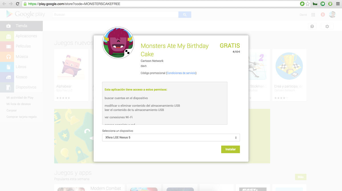 - Esperar con paciencia a que cargue una ventana flotante en la portada de Google Play, tardará unos segundos en hacerlo (es la que tenéis encima de estas líneas)