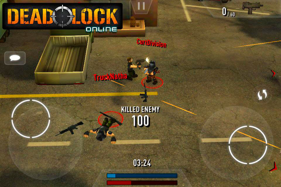 Deadlock Online es un shooter en vista cenital que debutó en iOS allá por 2011. Se trata de un juego competitivo donde podremos jugar en una sala contra 7 jugadores más, con unos controles táctiles dispuestos a ofrecernos la experiencia más cómoda. Y, como podéis ver en las capturas y vídeo, trata de dispararnos e intentar ser los mejores con un arma.