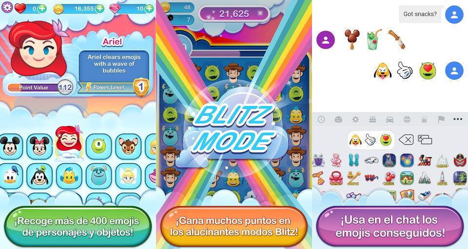 Cada personaje tiene sus personajes y es posible hacer combos para mejorar las puntuaciones, pero el principal atractivo de esta aplicación es que cuenta con un teclado en el que podremos conseguir Emojis de Disney y Pixar que consigamos en el juego.