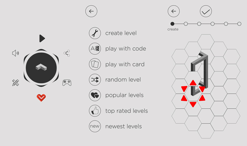 Las estructuras por las que moveremos el cubo ofrecerán distintos niveles dependiendo de la perspectiva. Son figuras imposibles por las que se trazan caminos que escapan a la lógica. De ahí que no sea fácil llegar al final conforme subamos de nivel. Como ayuda tendremos un círculo superior que nos indicará hacia dónde nos podemos mover una vez lleguemos a las intersecciones.