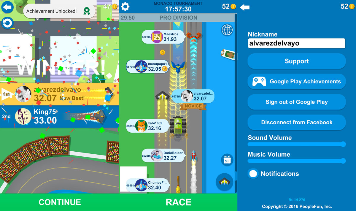 Race Time es un juego de carreras en el que tendremos que pilotar con un dedo y batir a nuestros rivales y en el que el circuito cambiará cada día.