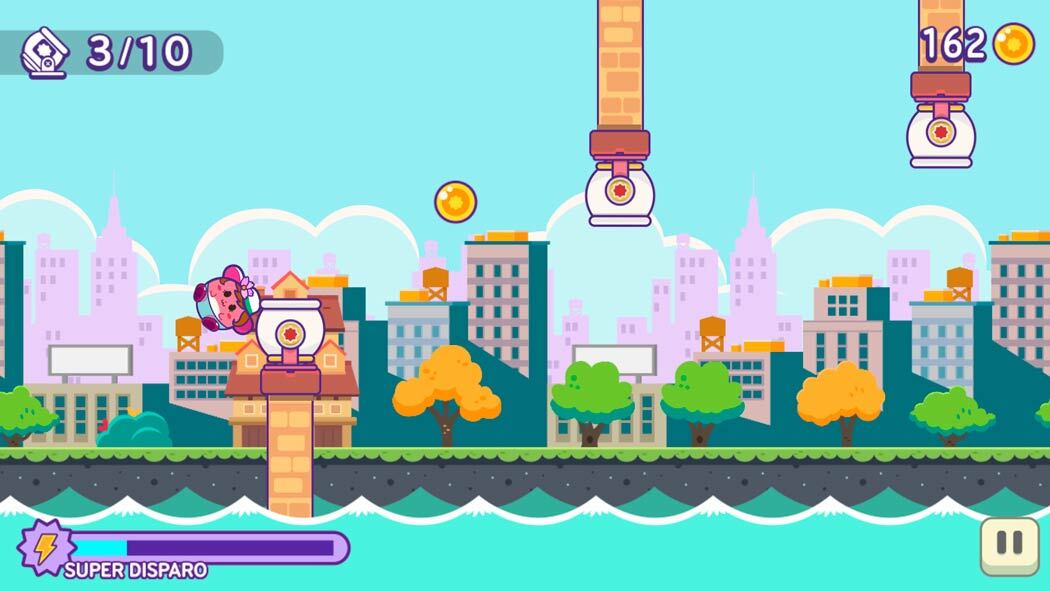 Tendremos una colección de gatos que podremos ir desbloqueando conforme obtengamos monedas en el juego. La mecánica es sencilla: basta con apuntar al siguiente cañón y disparar justo cuando estemos en línea. Cuanto más cañones recorramos mejor, especialmente en los desafíos. Y, como es habitual, también tenemos combos y powerups con los que avanzar más rápido.