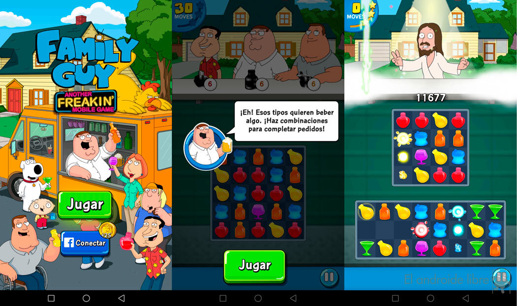 Tal cual: tendremos que armar combinaciones de bebidas iguales y del mismo color. Todo para tumbar, literalmente, a los clientes en la barra improvisada que se ha montado Peter con su bar móvil. Idéntica mecánica a Candy Crush, pero con toda el humor que podemos encontrar en Padre de Familia. El resultado es tan divertido como «chispeante».